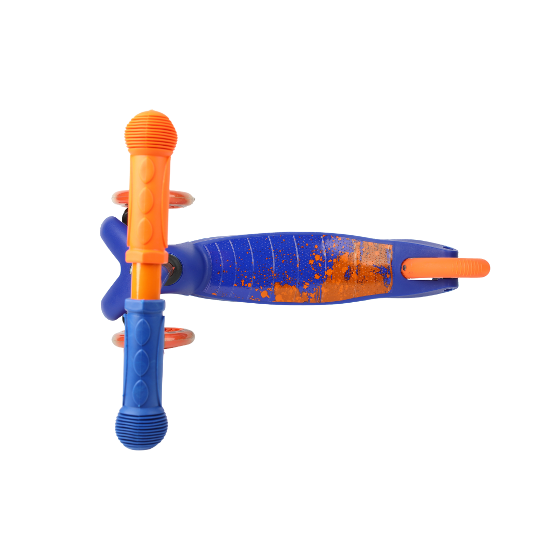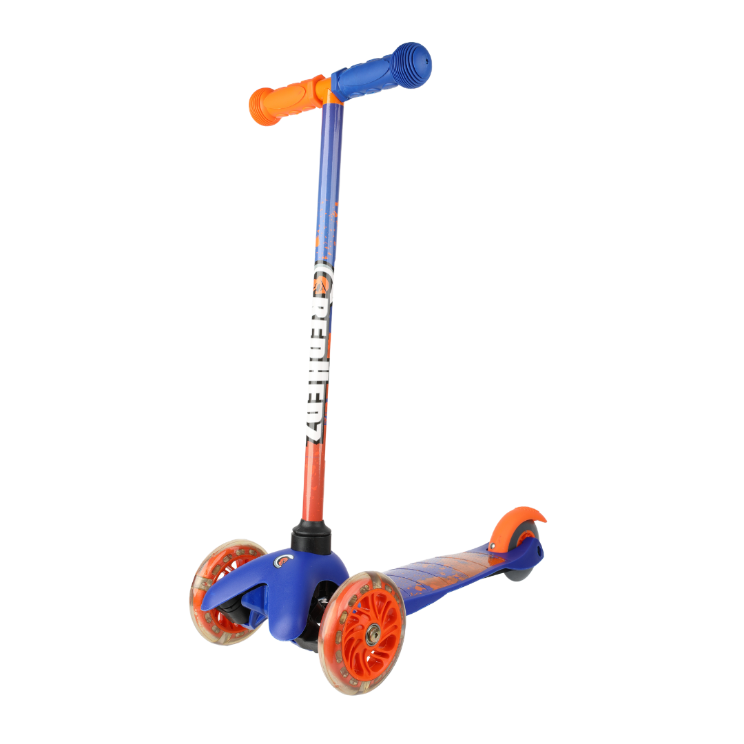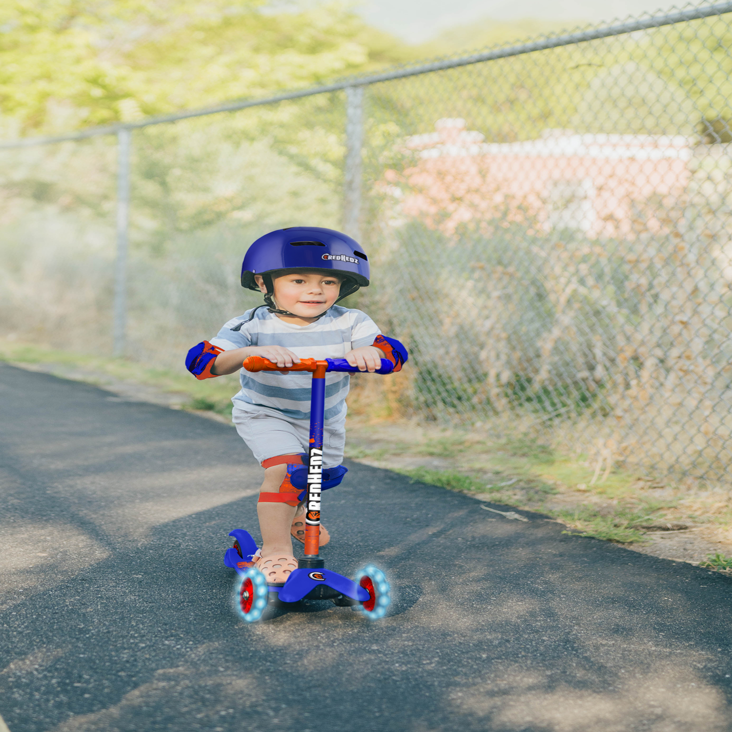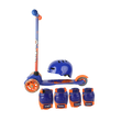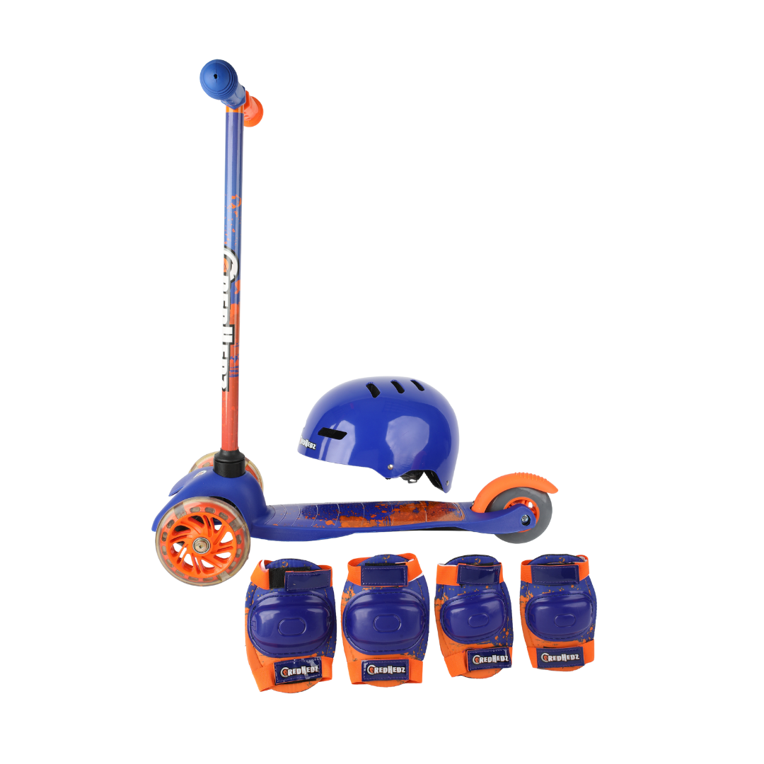 The scooter is designed for children ages three to five to begin developing their motor skills as well as strength and coordination. The three-wheel design helps your child balance easily with a simple tilt-and-turn steering system. The deck is wide and sturdy and features a rear foot brake so they can build up their confidence and you can have ease of mind as they explore the world. Comes with Matching Helmet and Protective Gear.