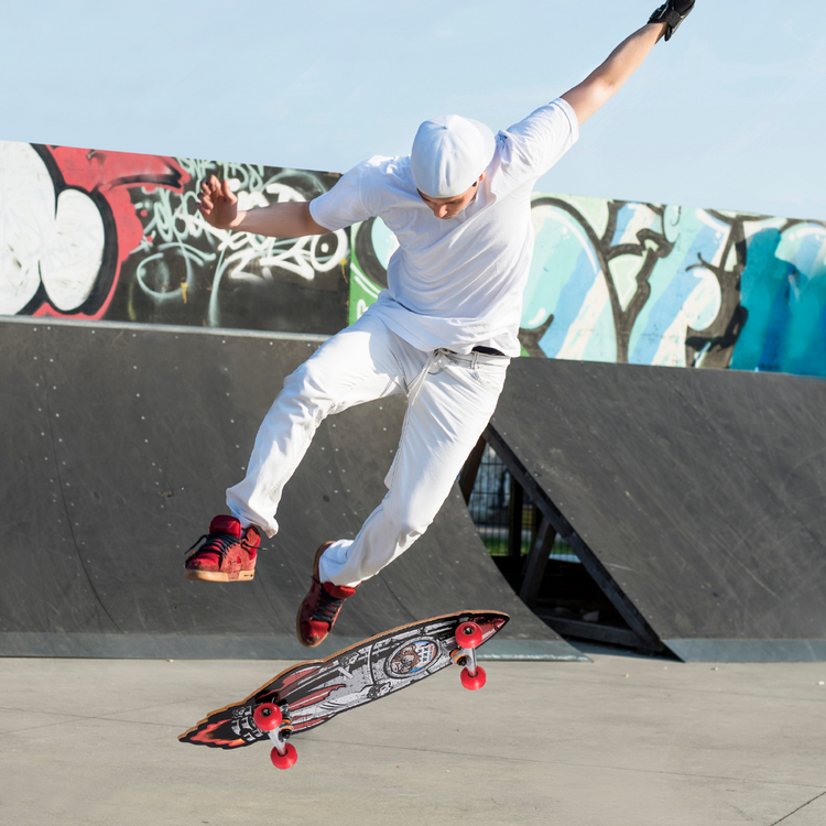 With a unique board design, this skateboard makes the perfect gift for teen girls and boys in need of a board that can hold its own at the local skatepark. The Rocket Skateboard give you everything you need to hit the skatepark with confidence!
