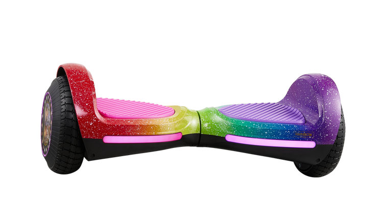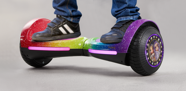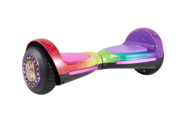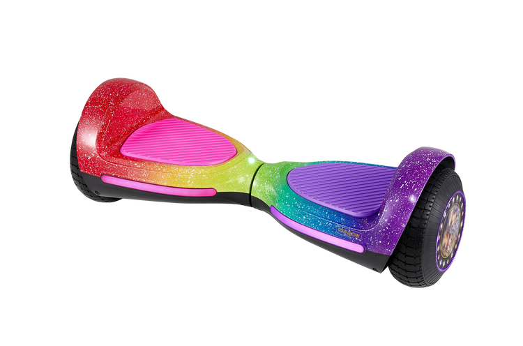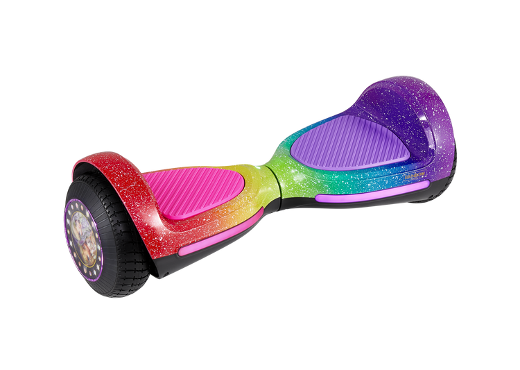 When it comes to kids Hoverboards, look no further than the Rainbow High Hover Play hoverboard! This hoverboard is a blast to ride and is the only hoverboard that features animated 3D graphics that come to life as the wheels spin. The Rainbow High Hover Play features active balance technology making it a breeze to ride. This balancing technology makes this the perfect hoverboard for both novice and seasoned riders. With its colorful Rainbow High graphics, a top speed of 6 MPH, and a range of up to 3 miles per charge, this hoverboard is unlike anything else on the market. This hoverboard has a max weight limit of 130 lbs and is perfect for ages 5+