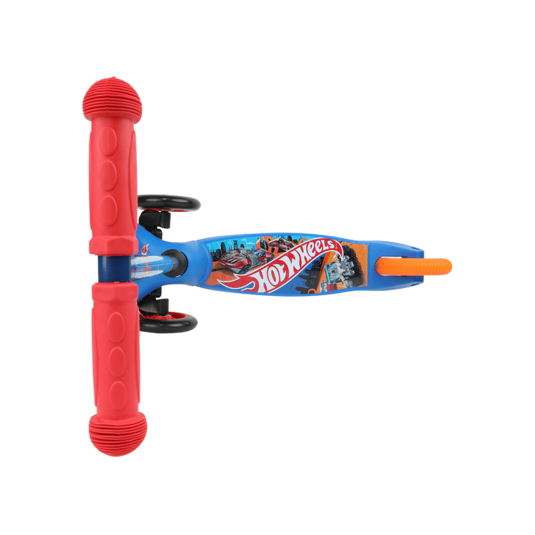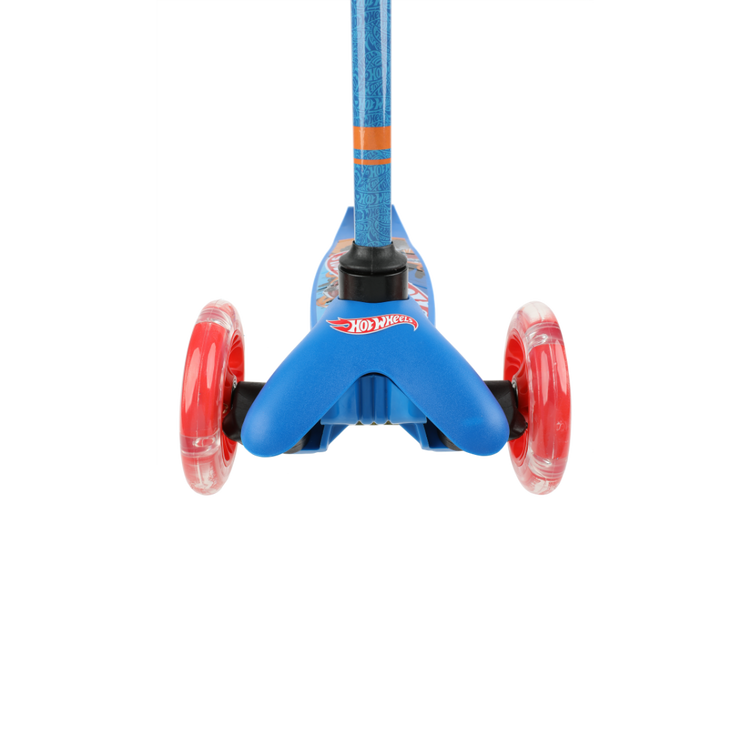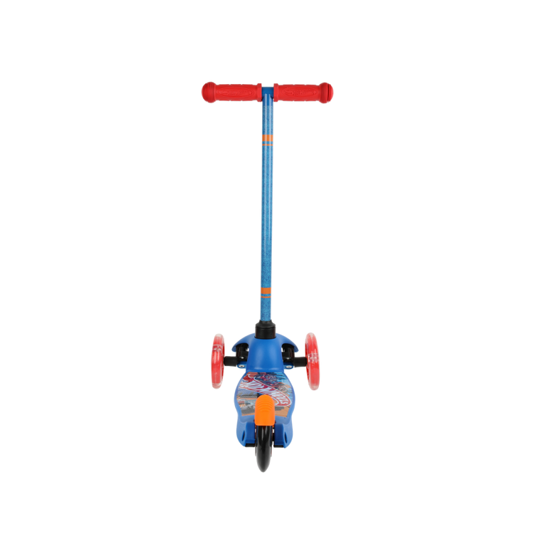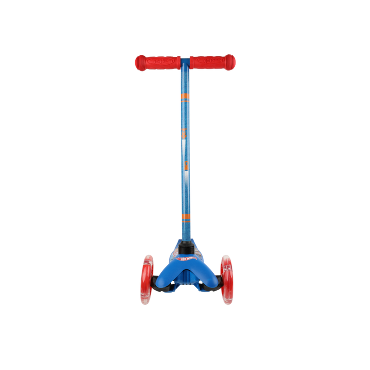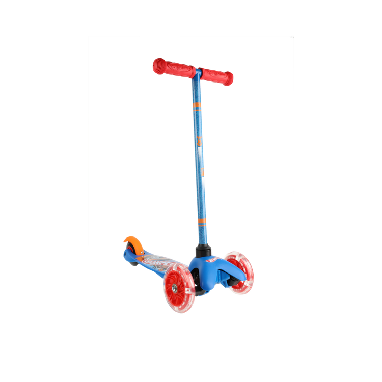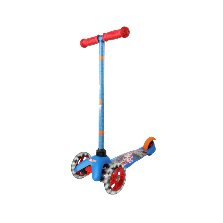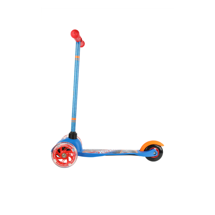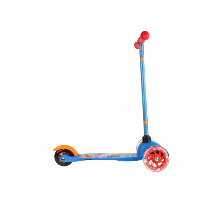 Create long-lasting memories with the Hot Wheels 3-Wheel Tilt and Turn Light Up Wheel Scooter. The scooter is designed for children ages three to five to begin developing their motor skills as well as strength and coordination. The three-wheel design helps your child balance easily with a simple tilt-and-turn steering system. The deck is wide and sturdy and features a rear foot brake so they can build up their confidence and you can have ease of mind as they explore the world.