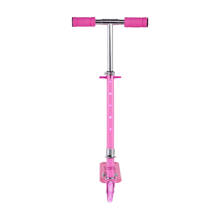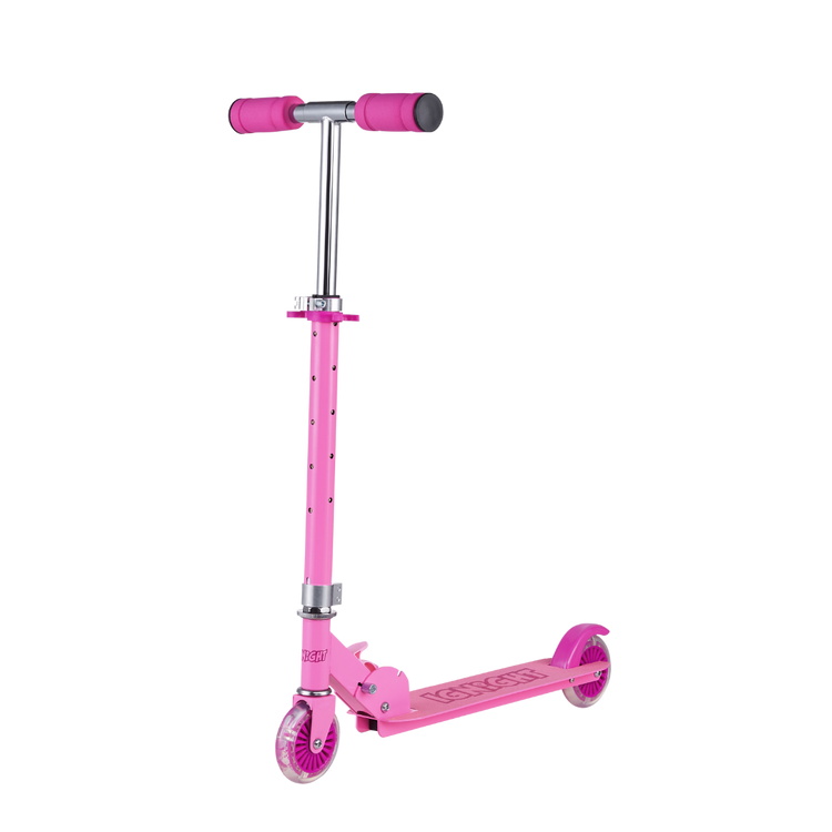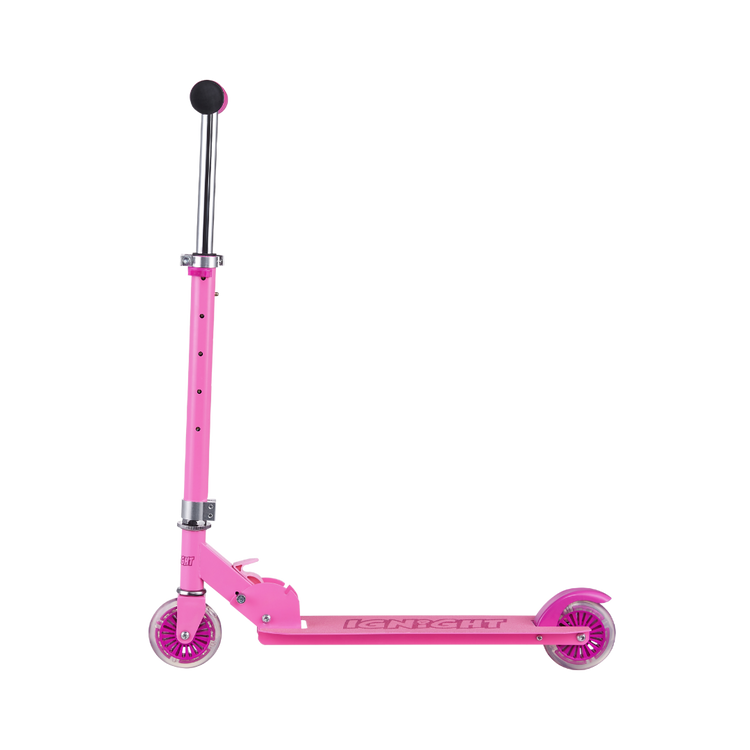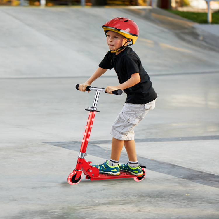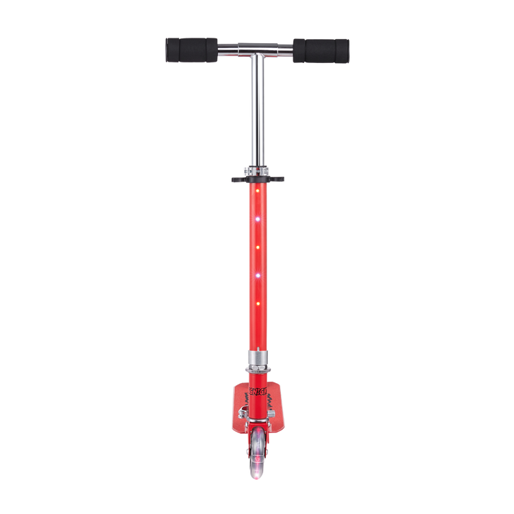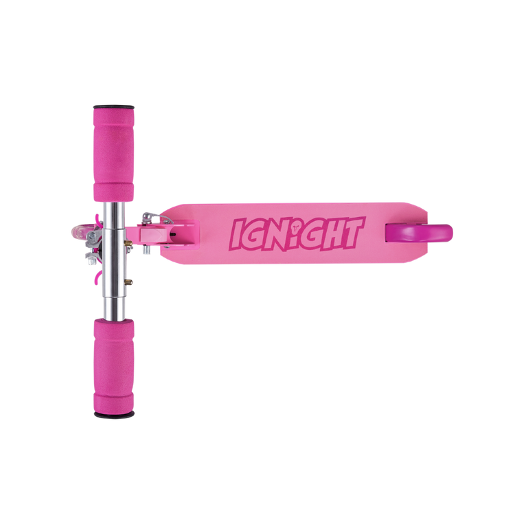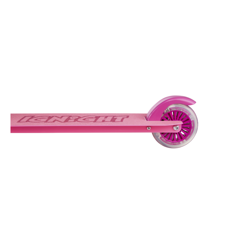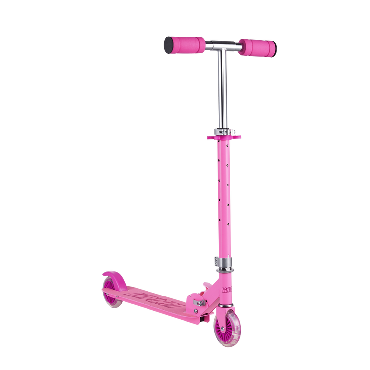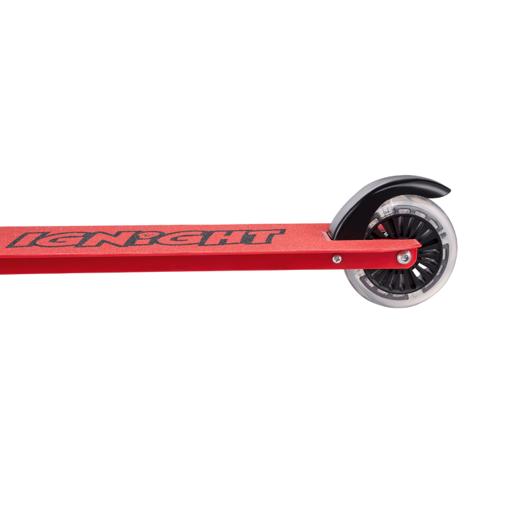 Put on your helmet, kick off and go have fun! This Ignight Light Up T-Bar and Wheel Scooter is perfect for tons of outdoor fun adventures. This kick scooter is made out of a strong, light metal deck to keep it lightweight and sturdy for everyday use. It easily folds to a compact size that can fit in cars, trucks, or closets. With rubber grips for a comfortable grasp and a quick stop rear brake as an added layer of safety for those quick decisions.