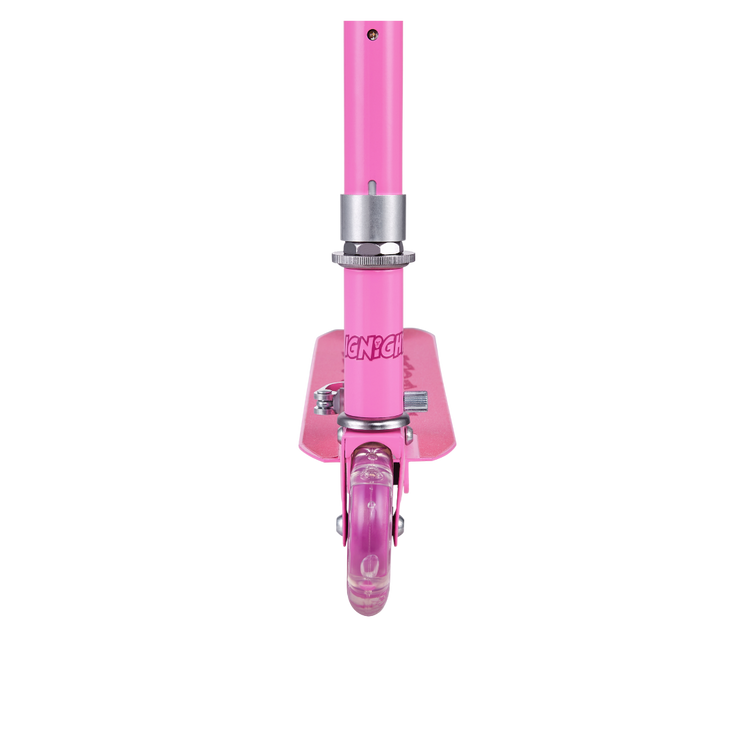 Strong, light metal deck to keep it lightweight and sturdy for everyday use quick stop rear brake as an added layer of safety easily folds to a compact size that can fit in cars, trucks, or closets rubber grips for a comfortable grasp 120mm Front and Back PVC Wheels Light up T-bar and wheels