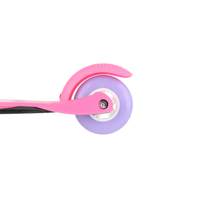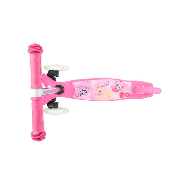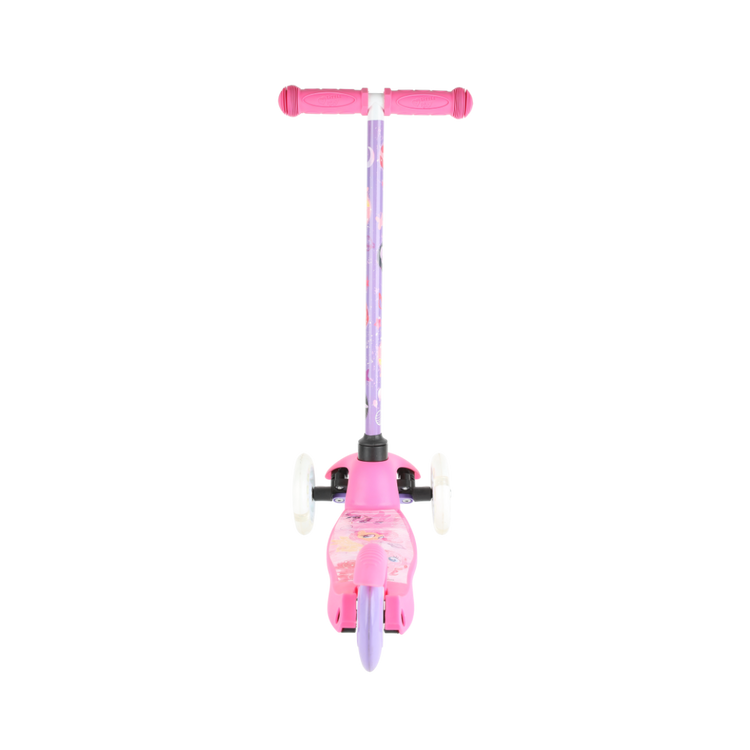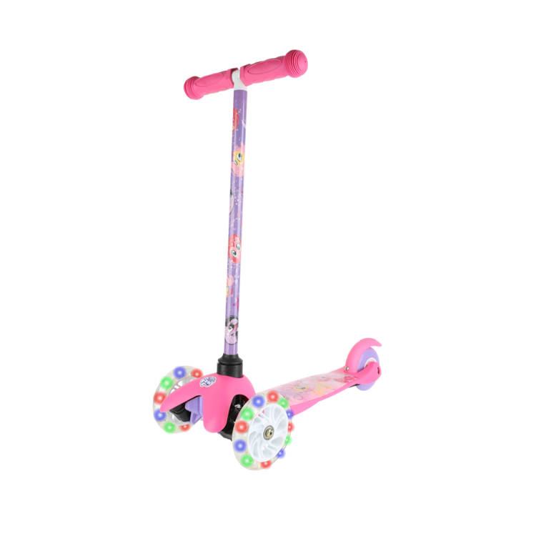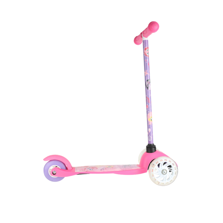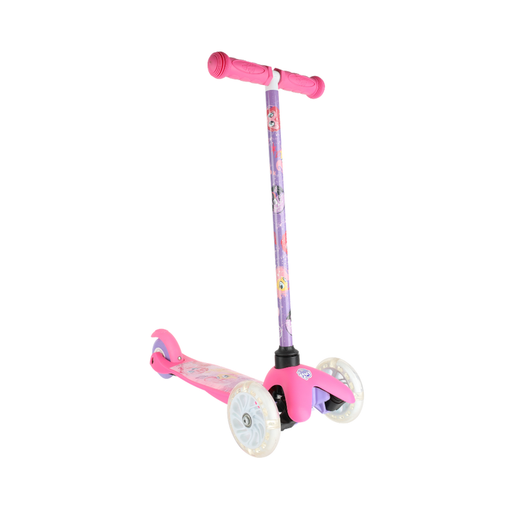 Create long-lasting memories with the My Little Pony 3-Wheel Tilt and Turn Light Up Wheels Scooter. The scooter is designed for children ages three to five to begin developing their motor skills as well as strength and coordination. The three-wheel design helps your child balance easily with a simple tilt-and-turn steering system. The deck is wide and sturdy and features a rear foot brake so they can build up their confidence and you can have ease of mind as they explore the world.
