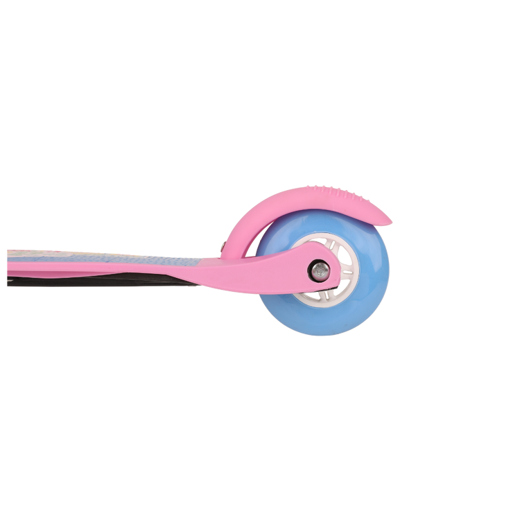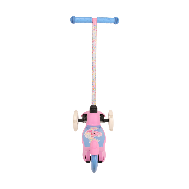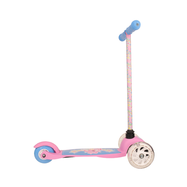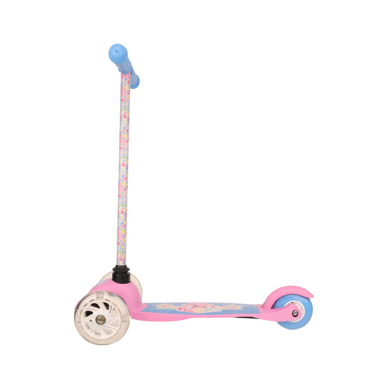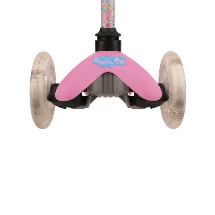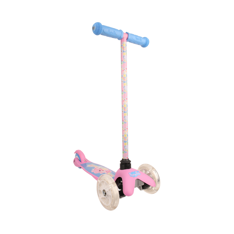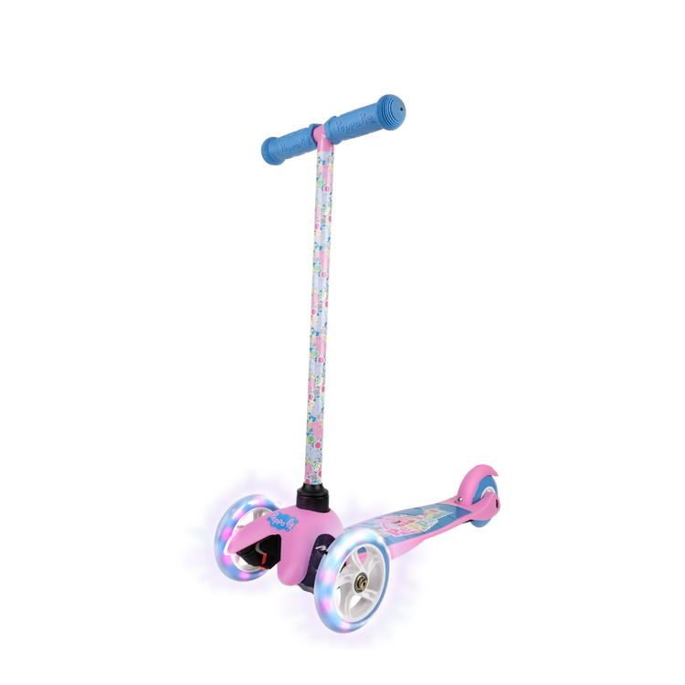 Create long-lasting memories with the Peppa Pig Tilt and Turn Light Up Wheel Scooter. The scooter is designed for children ages three to five to begin developing their motor skills as well as strength and coordination. The three-wheel design helps your child balance easily with a simple tilt-and-turn steering system. The deck is wide and sturdy and features a rear foot brake so they can build up their confidence and you can have ease of mind as they explore the world.