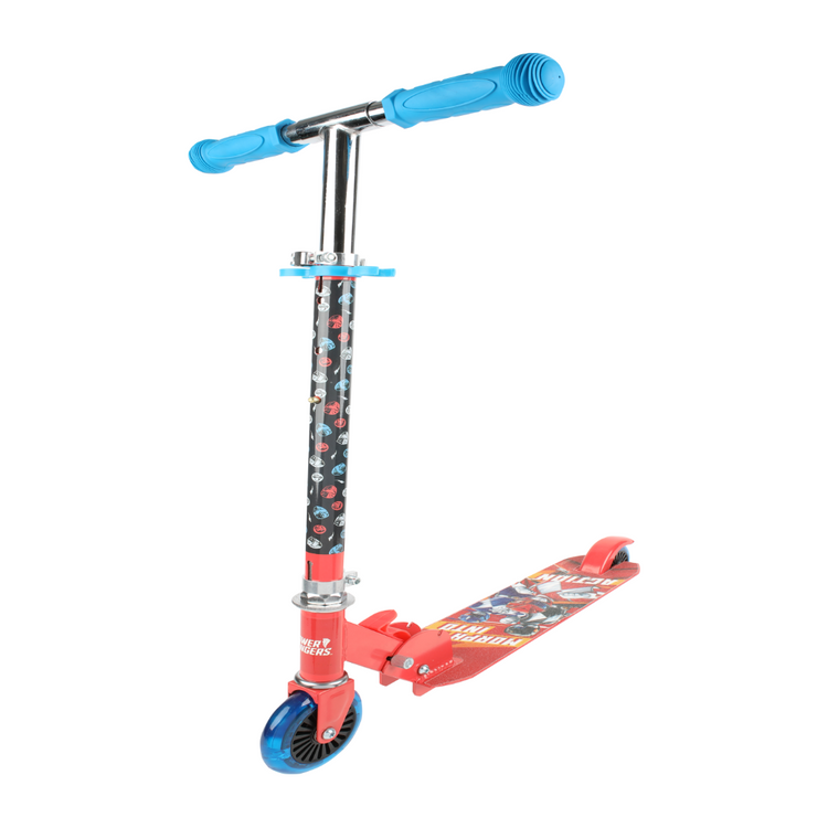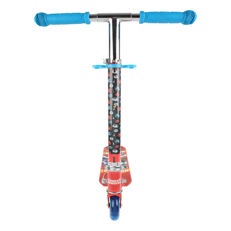Put on your helmet, kick off and go have fun! Power Rangers Light Up Wheel Scooter is perfect for tons of outdoor fun adventures. This kick scooter is made out of a strong, light metal deck to keep it lightweight and sturdy for everyday use. It easily folds to a compact size that can fit in cars, trucks, or closets. With rubber grips for a comfortable grasp and a quick stop rear brake as an added layer of safety for those quick decisions.