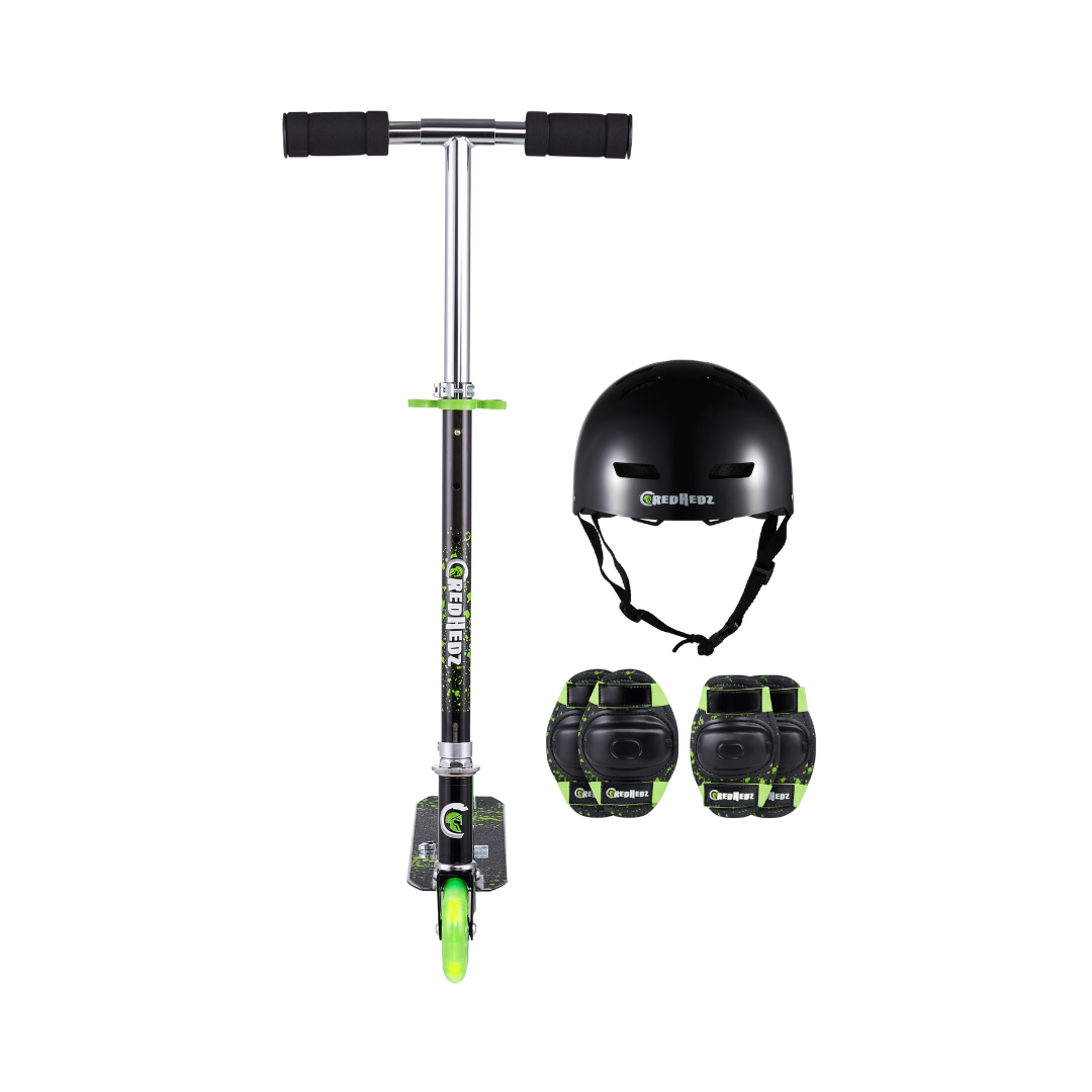 Credhedz 2 Wheel Light Up Wheels Scooter with Matching Abs Helmet and Protective Gear