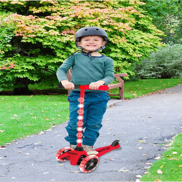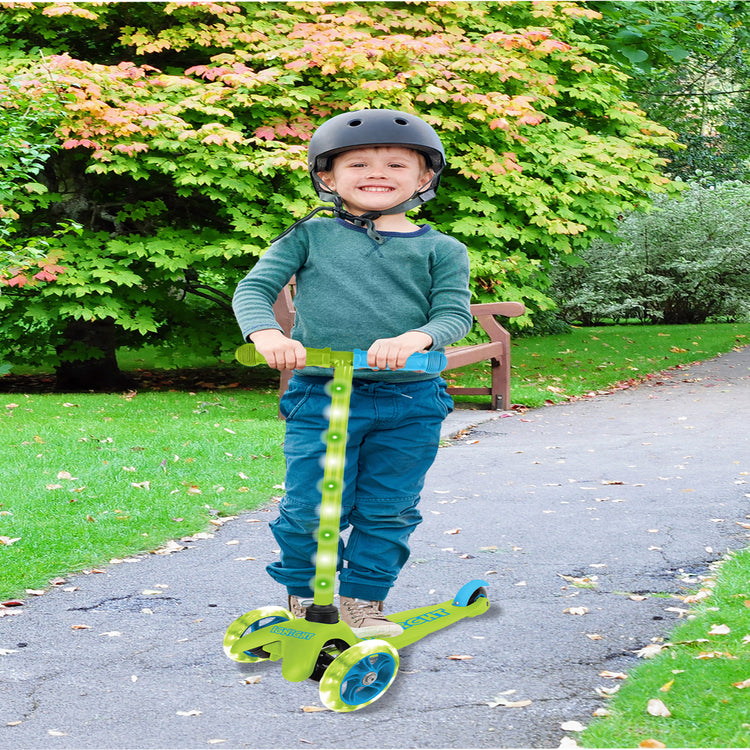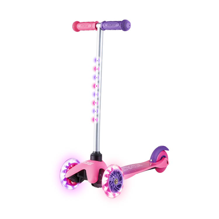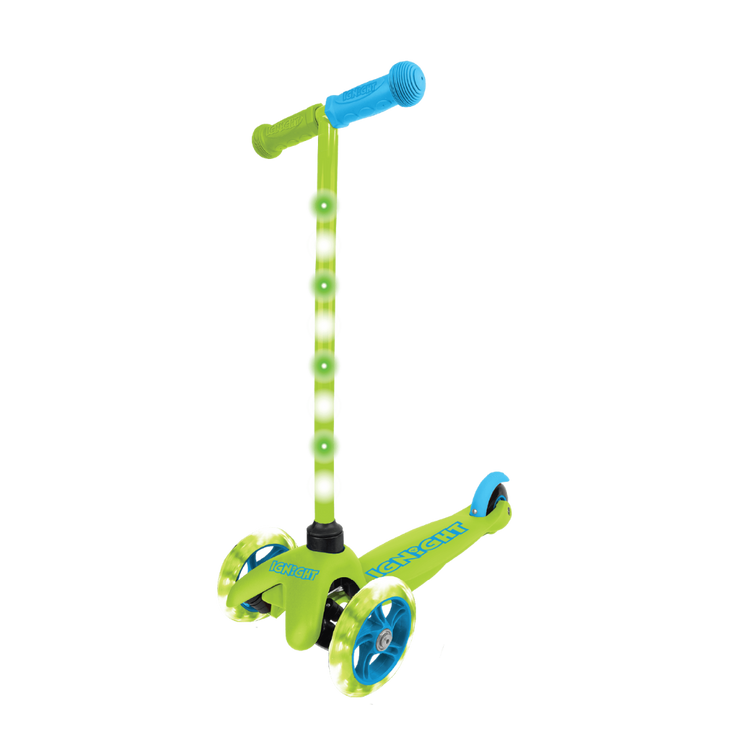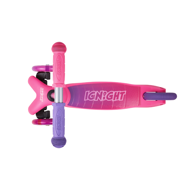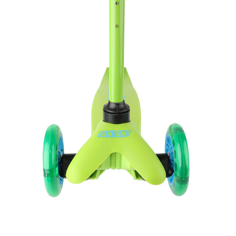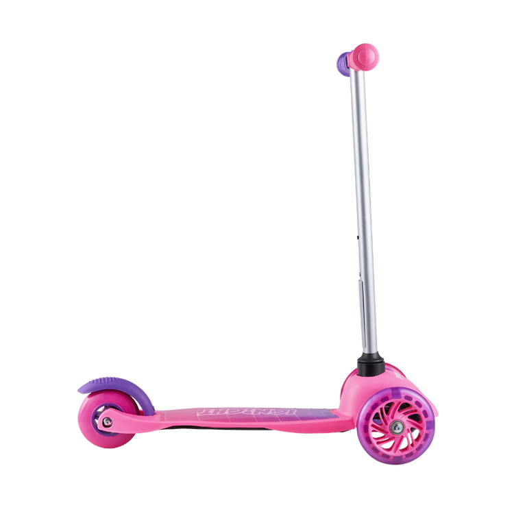 Create long-lasting memories with the Ignight 3 Wheel Tilt and Turn Light Up T-Bar Wheels Scooter. The scooter is designed for children ages three to five to begin developing their motor skills as well as strength and coordination. The three-wheel design helps your child balance easily with a simple tilt-and-turn steering system. The deck is wide and sturdy and features a rear foot brake so they can build up their confidence and you can have ease of mind as they explore the world.