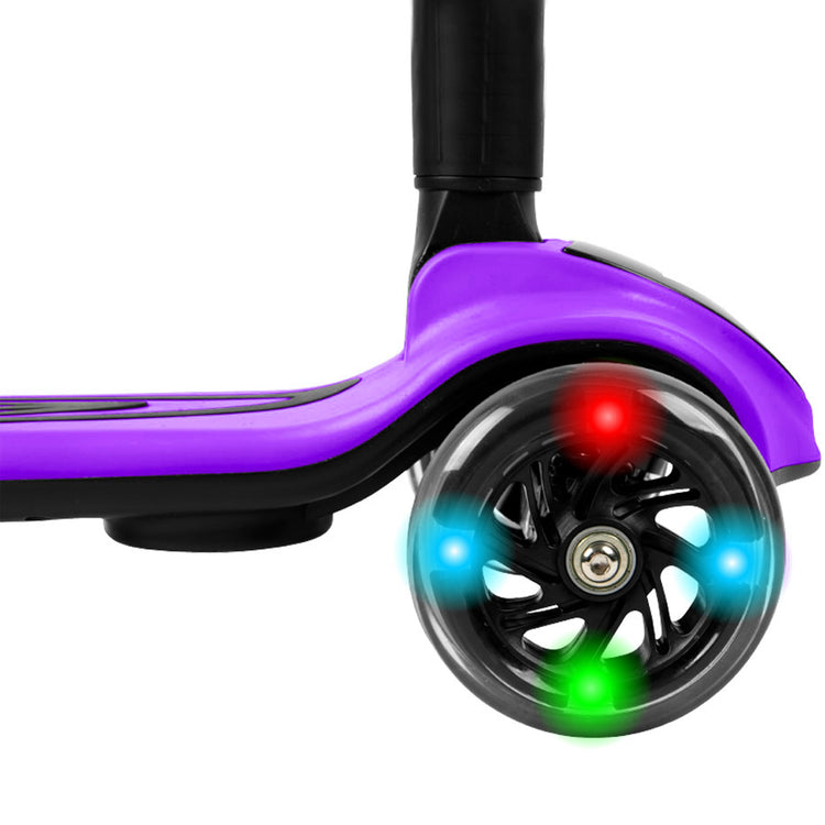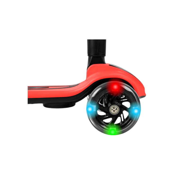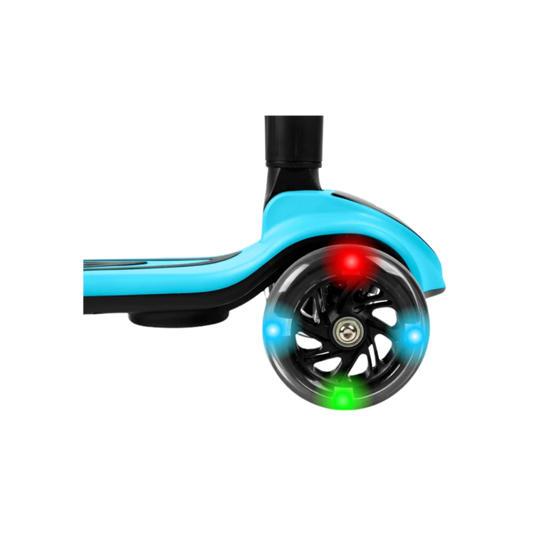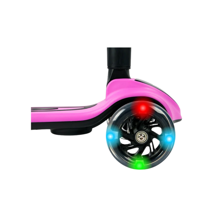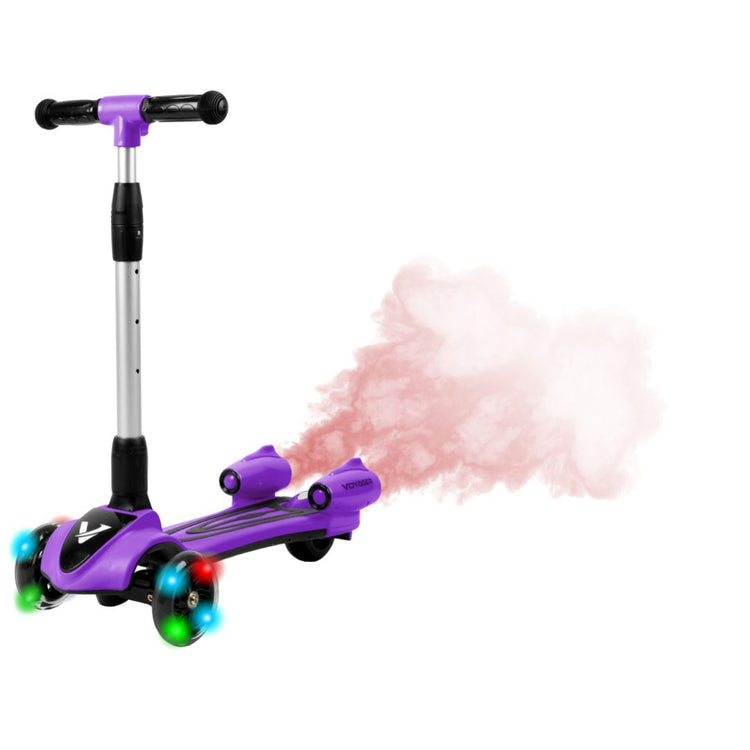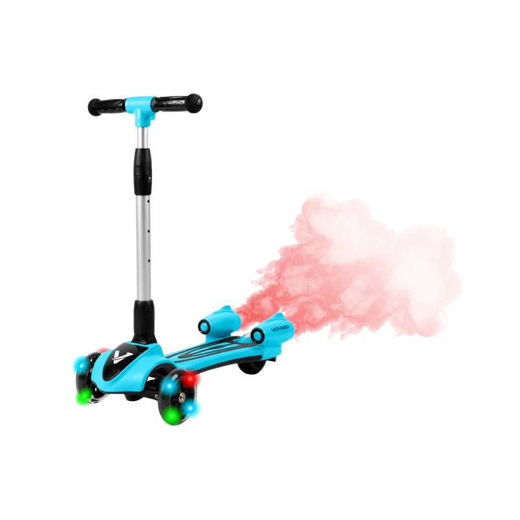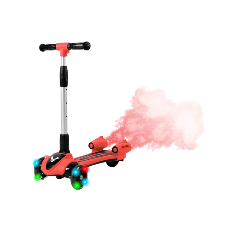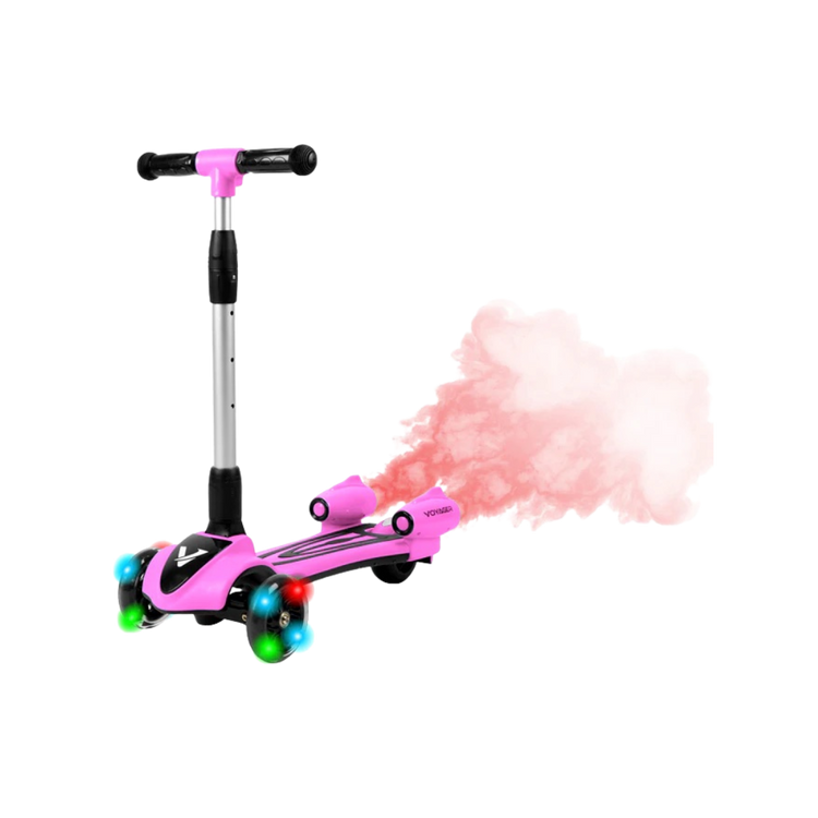 The Streamer push scooter is a one-of-a-kind fun and interactive toy for your little one! Simply add water into the back compartment and watch mist come out and illuminate in different colors. There is a built-in speaker to play your favorite songs to accompany you on your ride. Light-up LED wheels illuminate the sidewalk and allow you to see the path- this scooter is packed with awesome features